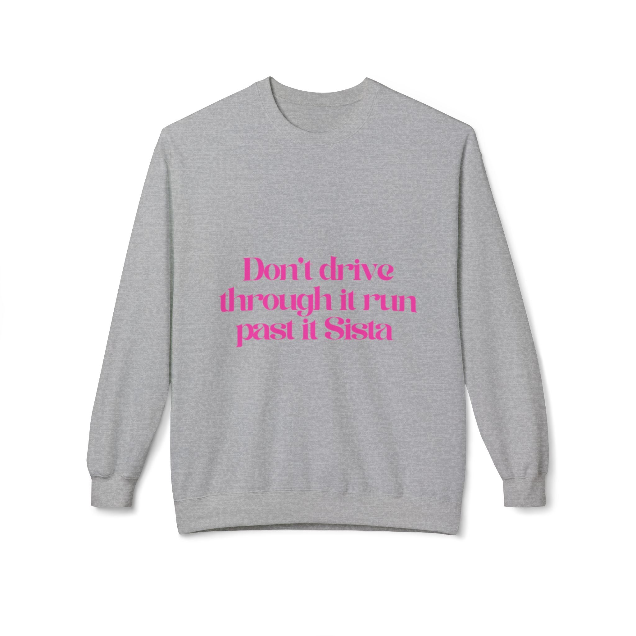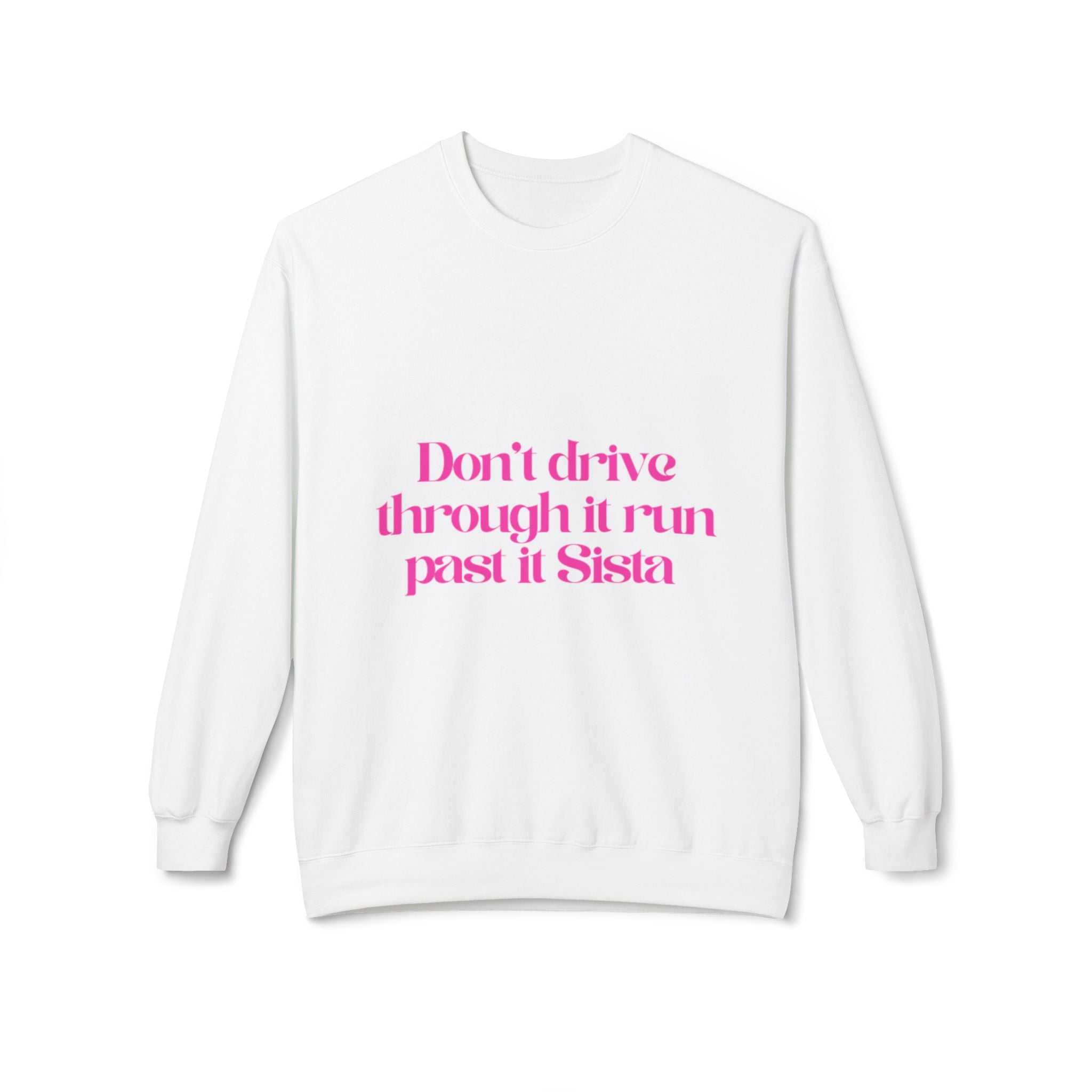Crewneck Sweatshirt — "Don't drive through it run past it Sista" Pink Script