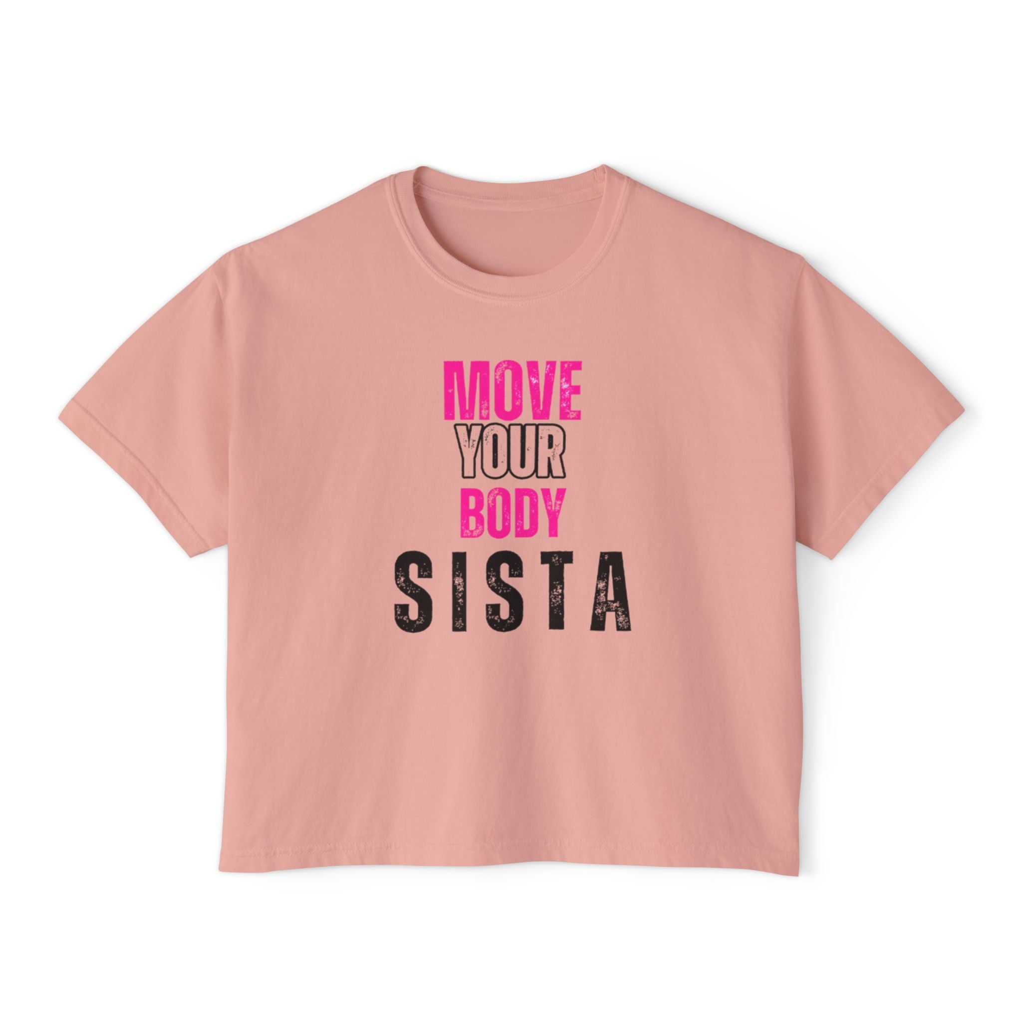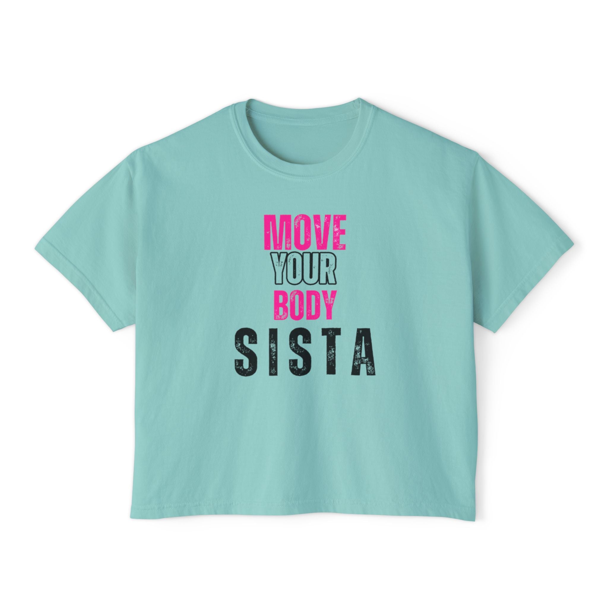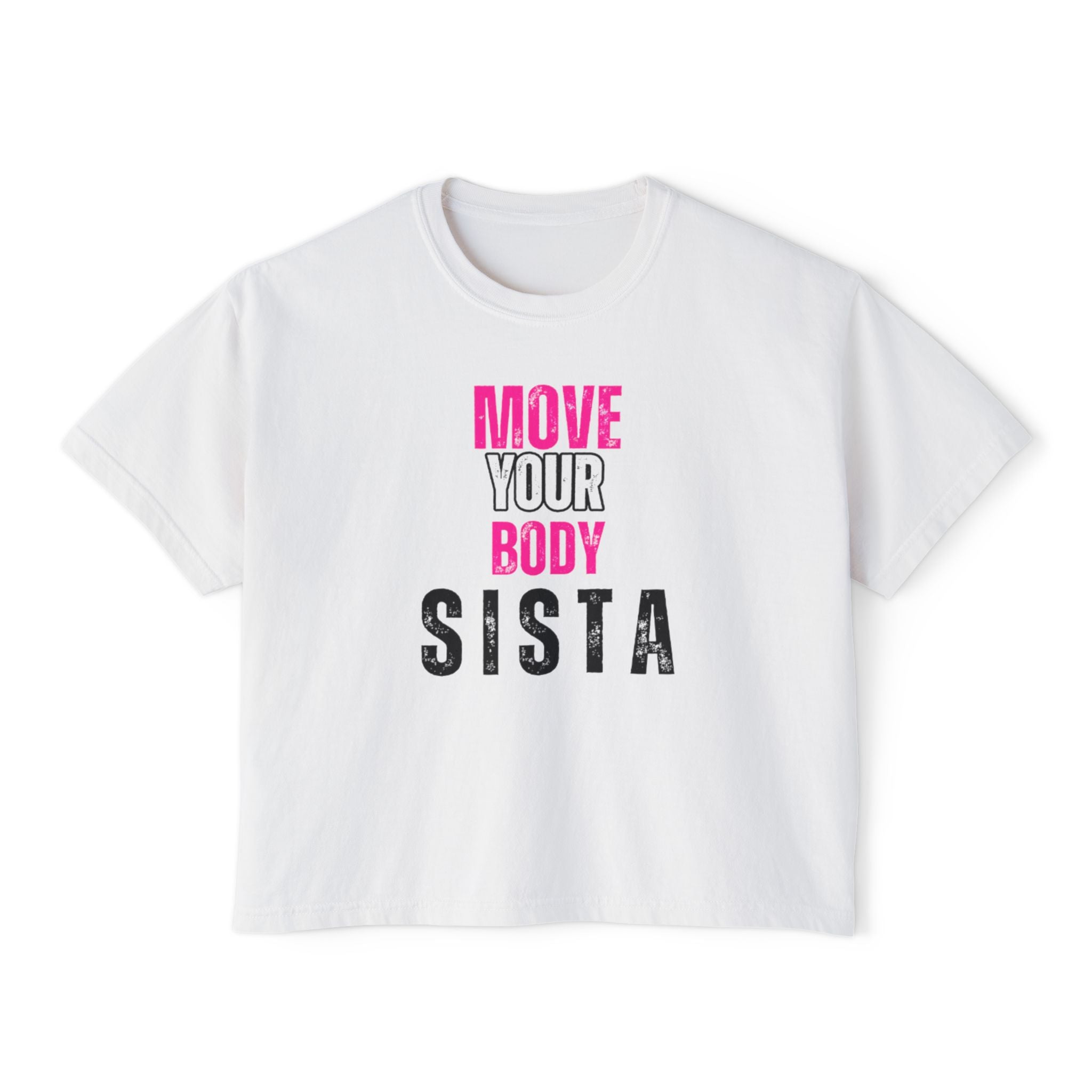 Empowering Women's Boxy Tee - Move Your Body Sista, Casual Workout Shirt, Gift for Fitness Lovers, Self-Care Apparel, Motivational Clothing